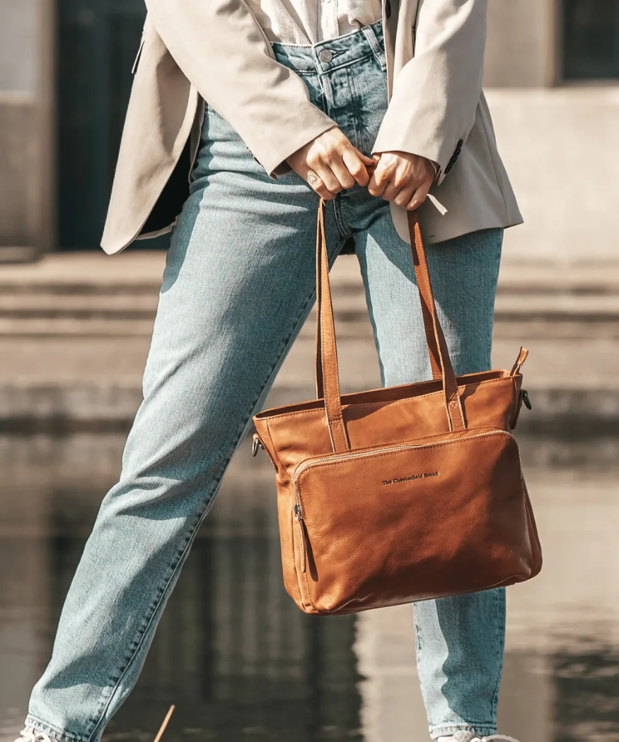 Made from premium Alicante cognac leather, this shopper bag offers a perfect blend of elegance and durability. Its rich tone and spacious design make it ideal for daily use, work, or travel. A refined choice for those who appreciate classic style with modern functionality.